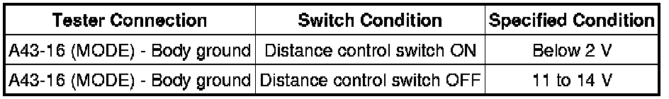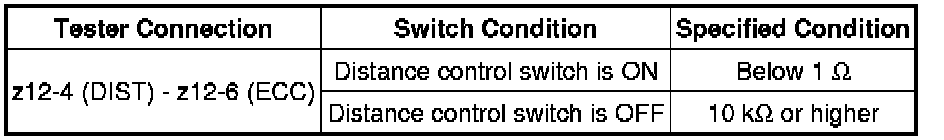 CRUISE CONTROL: DYNAMIC LASER CRUISE CONTROL SYSTEM: Distance Control Switch Circuit