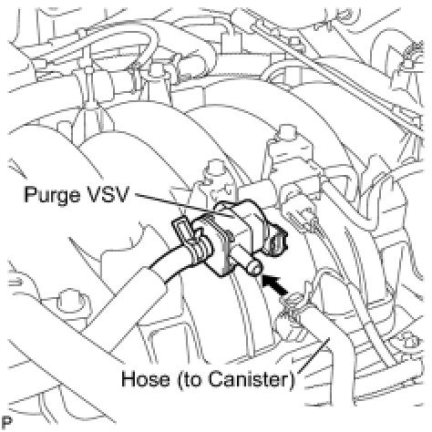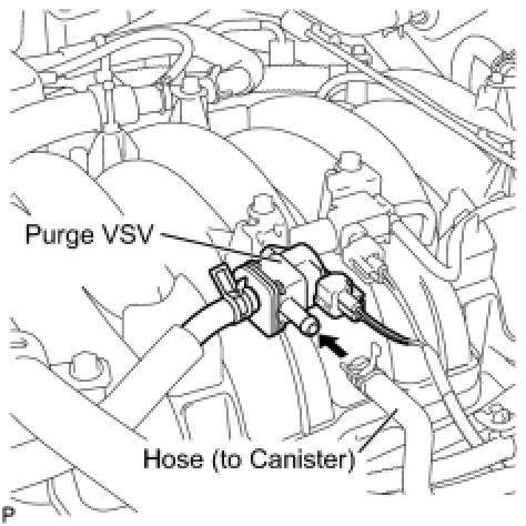 (b) Disconnect the hose (connected to the canister) from the purge VSV.