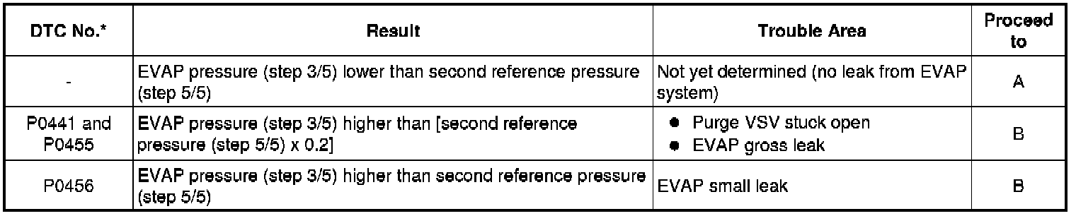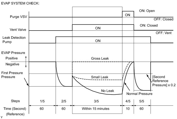 (b) Compare the EVAP pressure in step 3/5 and the second reference pressure (step 5/5).