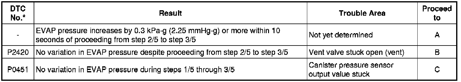 (a) Check the EVAP pressure increase in step 3/5.