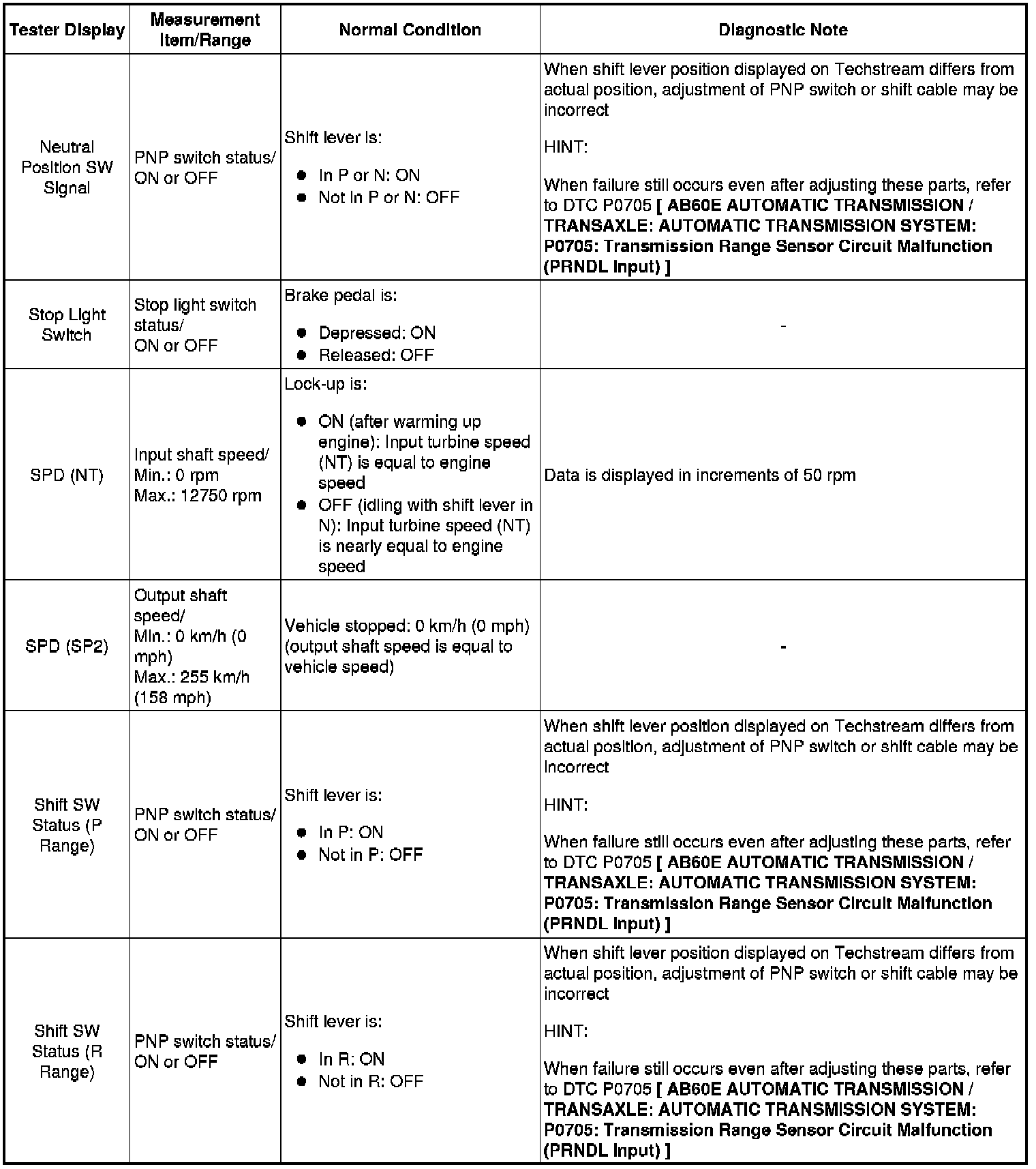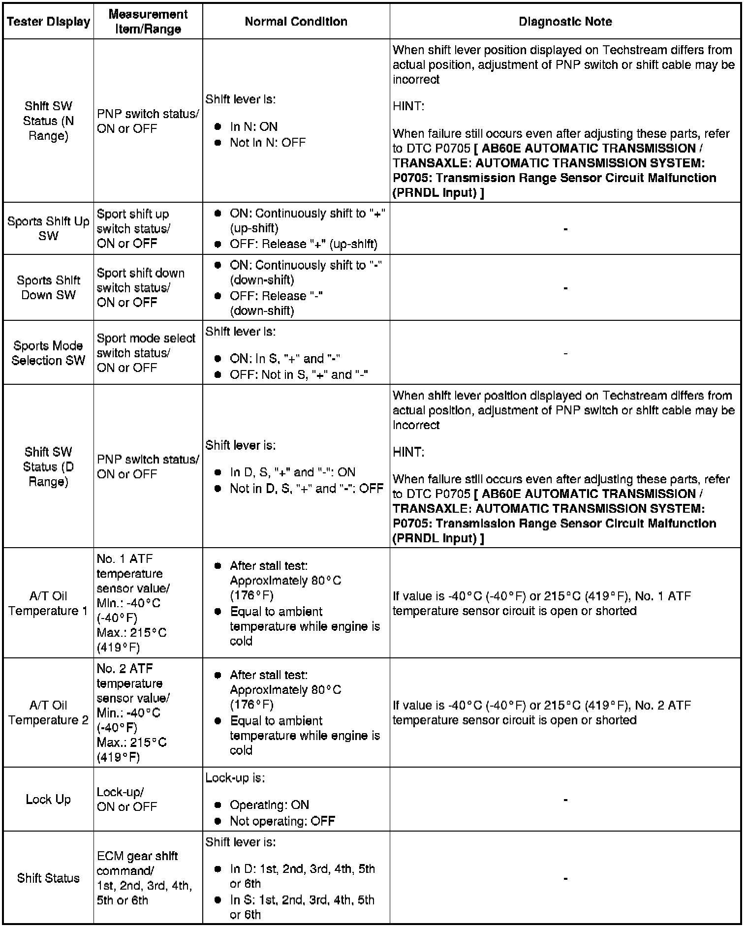 AB60E AUTOMATIC TRANSMISSION / TRANSAXLE: AUTOMATIC TRANSMISSION SYSTEM: DATA LIST / ACTIVE TEST