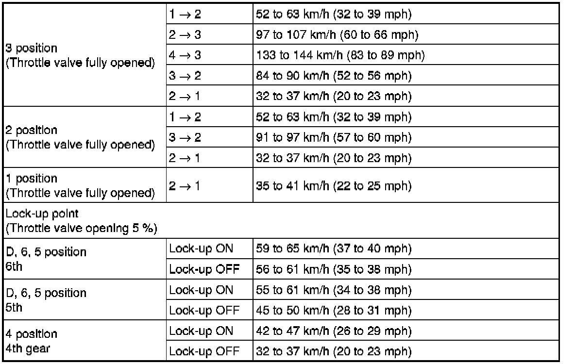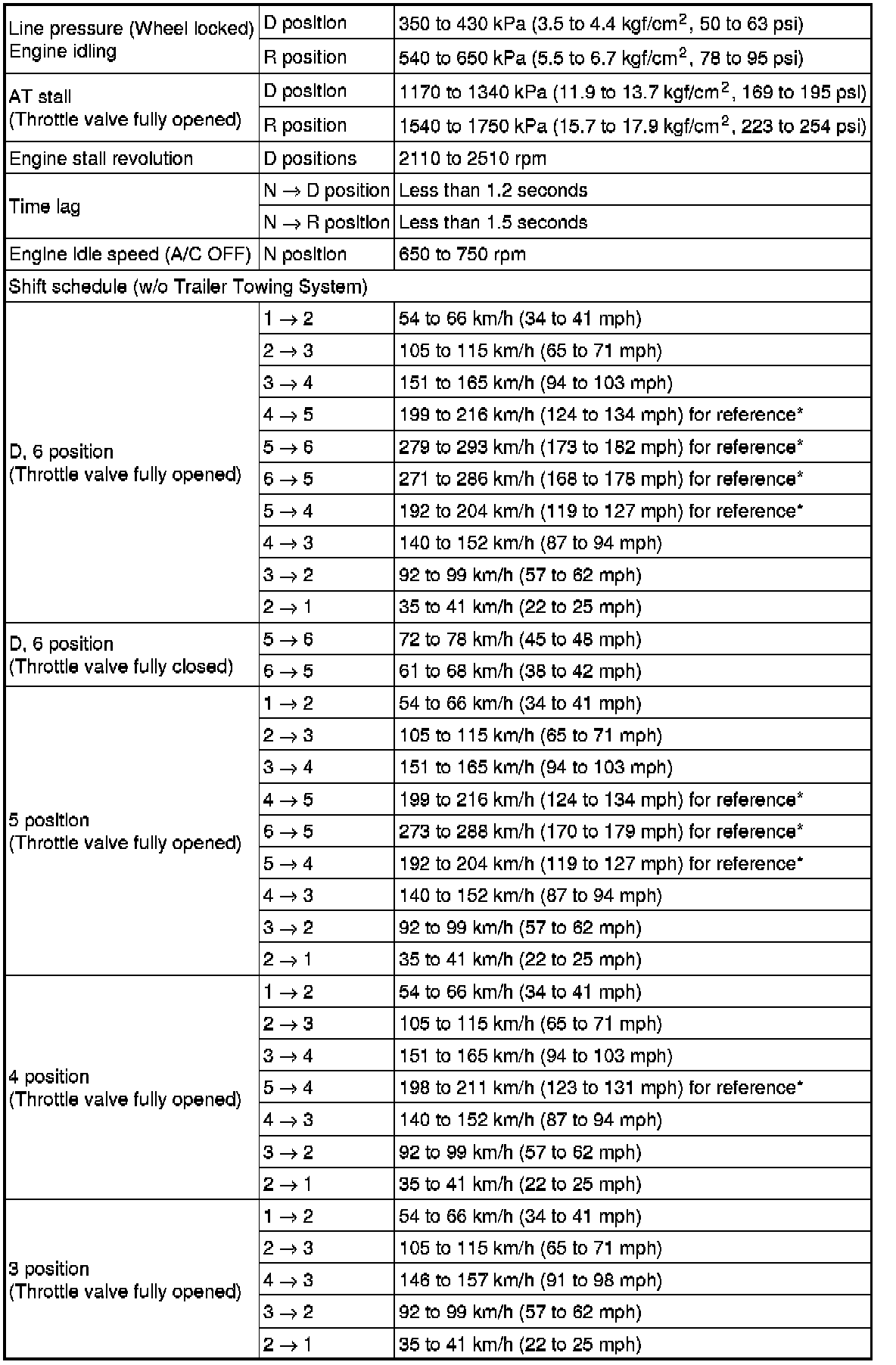 SPECIFICATIONS: AB60E AUTOMATIC TRANSMISSION / TRANSAXLE: SERVICE DATA
