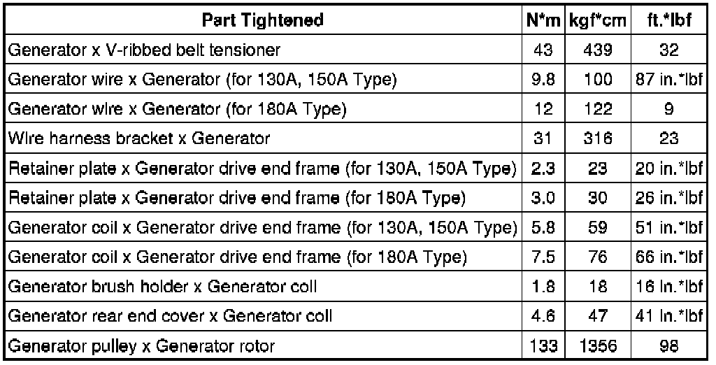SPECIFICATIONS: 3UR-FE BATTERY / CHARGING: TORQUE SPECIFICATIONS
