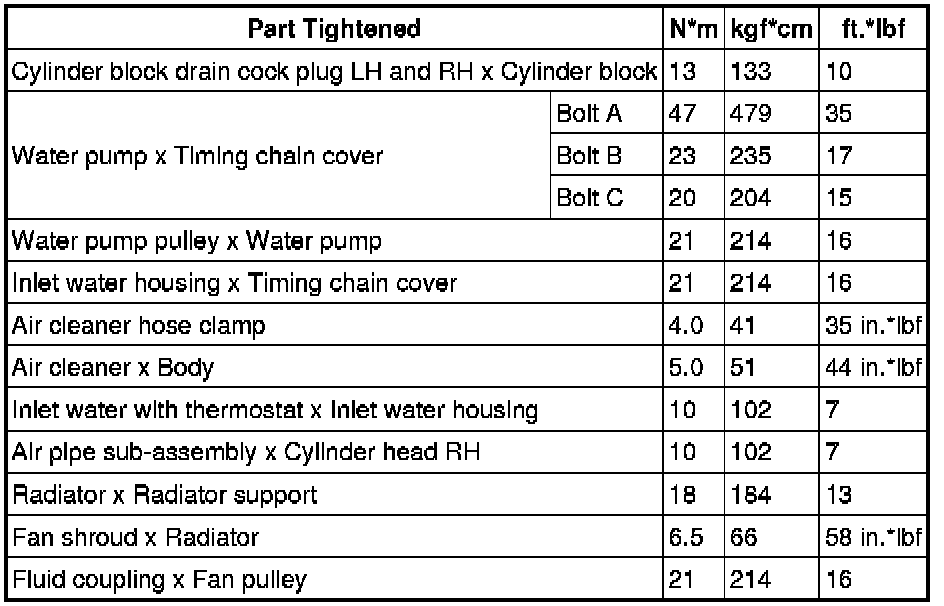 SPECIFICATIONS: 3UR-FE COOLING: TORQUE SPECIFICATIONS
