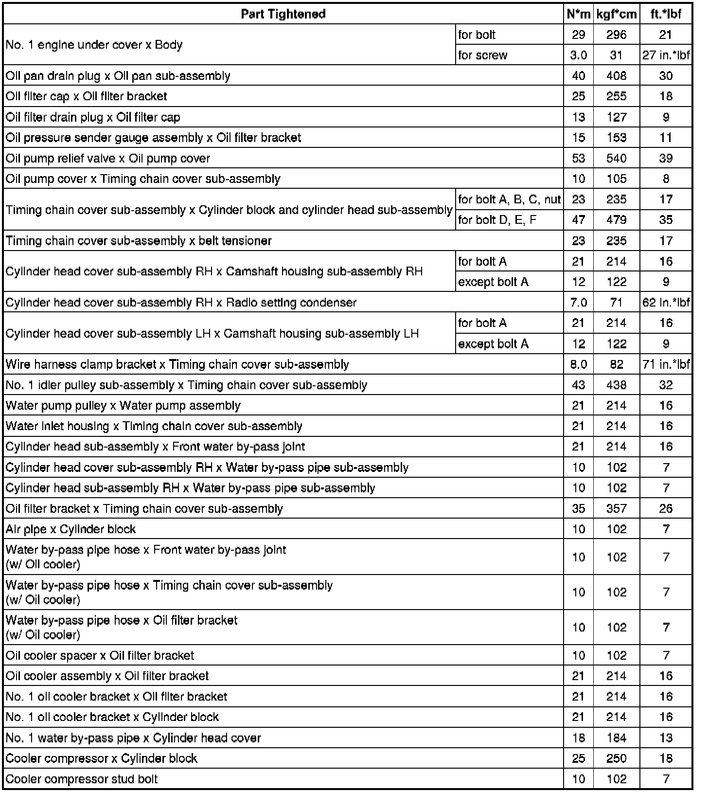 SPECIFICATIONS: 3UR-FE LUBRICATION: TORQUE SPECIFICATIONS