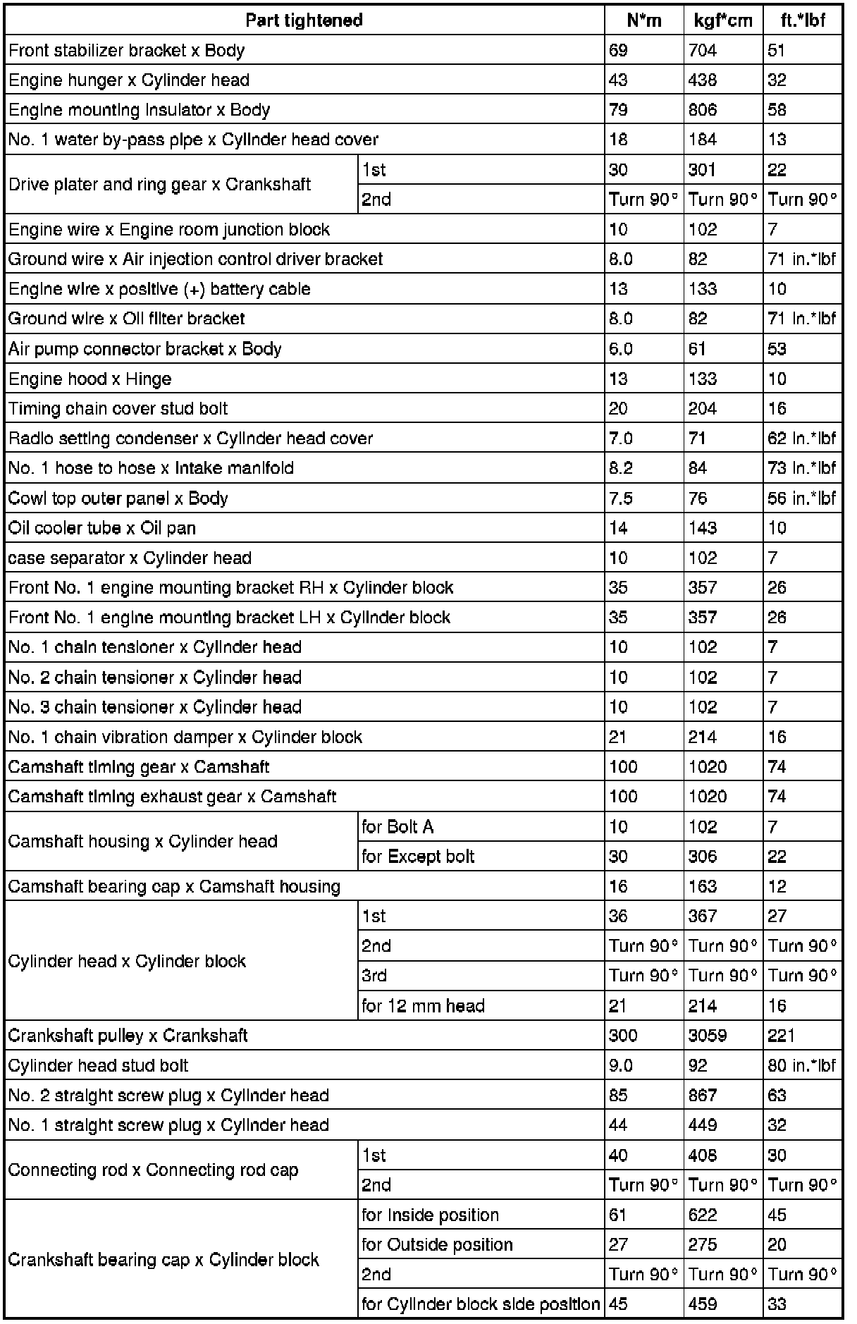 SPECIFICATIONS: 3UR-FE ENGINE MECHANICAL: TORQUE SPECIFICATIONS