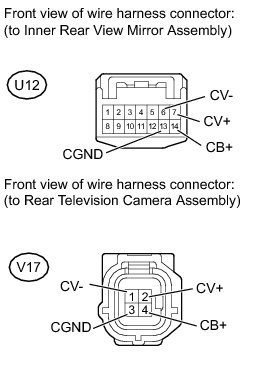 (b) Disconnect the V17 rear television camera assembly connector.