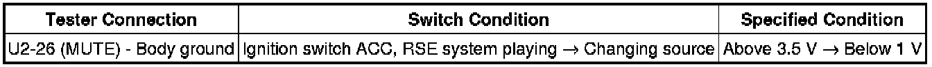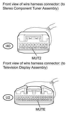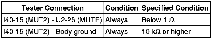 The MUTE signal is sent to reduce noise and a popping sound generated when switching the mode etc. If there is an open in the circuit, noise can be heard from the speakers when changing the sound source. If there is a short in the circuit, even though the navigation receiver assembly is functioning normally, no sound or only an extremely faint sound can be heard.