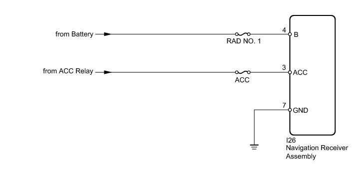 NAVIGATION / MULTI INFO DISPLAY: NAVIGATION SYSTEM (w/o USB Audio System): Navigation Receiver Assembly Power Source Circuit