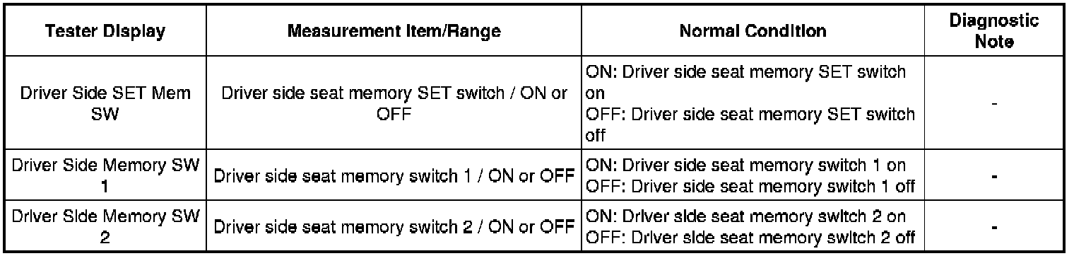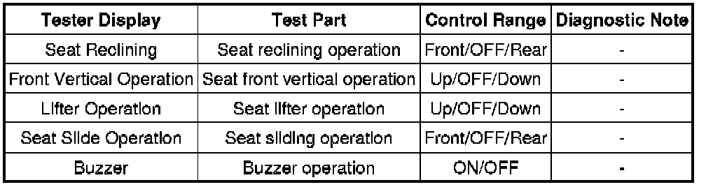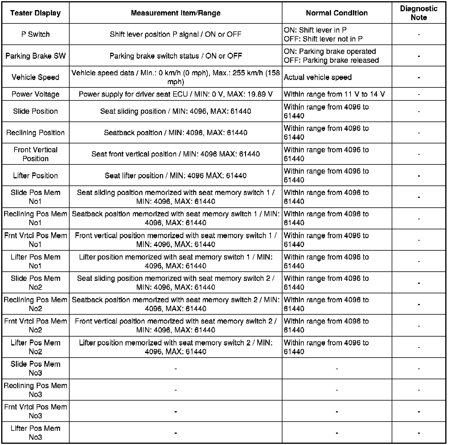 SEAT: FRONT POWER SEAT CONTROL SYSTEM (w/ Memory): DATA LIST / ACTIVE TEST