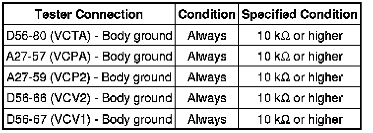 When the VC circuit is short-circuited, the microprocessor in the ECM and sensors that are supplied with power through the VC circuit are inactivated because the power is not supplied from the VC circuit. Under this condition, the system does not start up and the MIL does not illuminate even if the system malfunctions.
