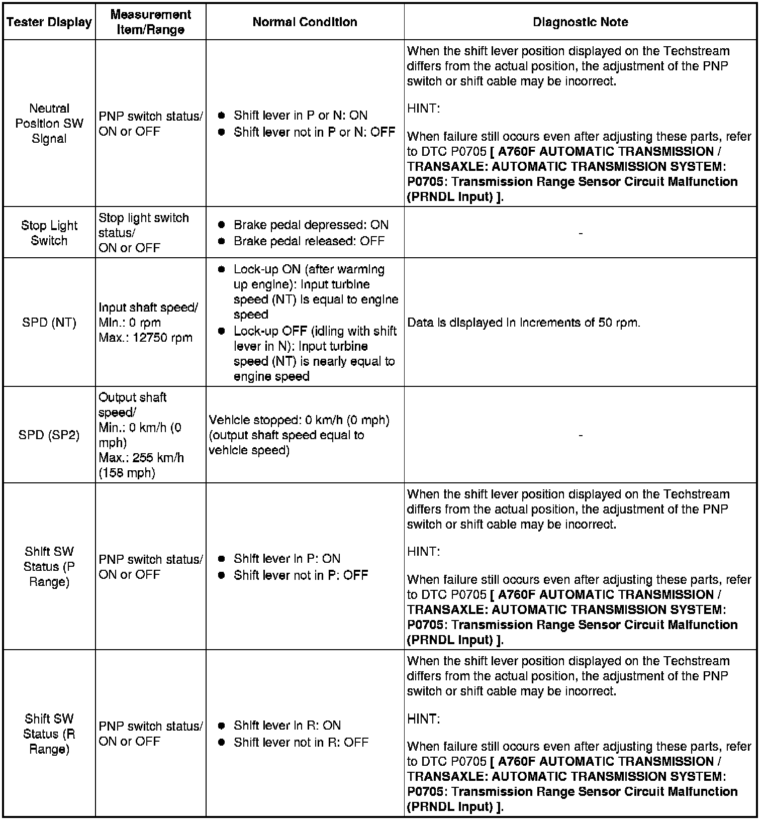 A760F AUTOMATIC TRANSMISSION / TRANSAXLE: AUTOMATIC TRANSMISSION SYSTEM: DATA LIST / ACTIVE TEST