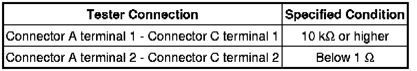 (1) Disconnect connectors A and C and measure the resistance between them.