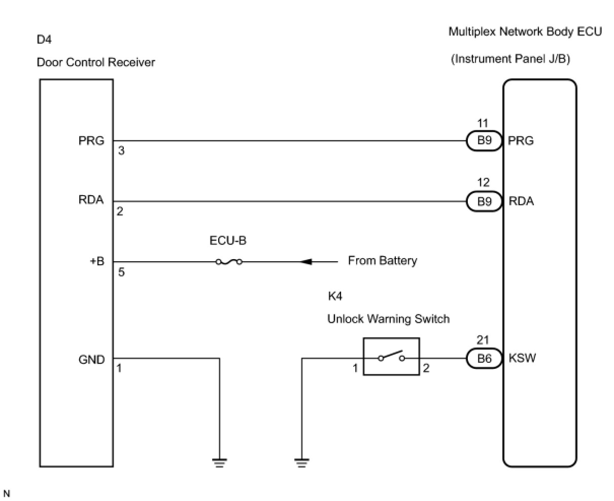 13. CHECK HARNESS AND CONNECTOR (MULTIPLEX NETWORK BODY ECU - UN-LOCK WARNING SWITCH)