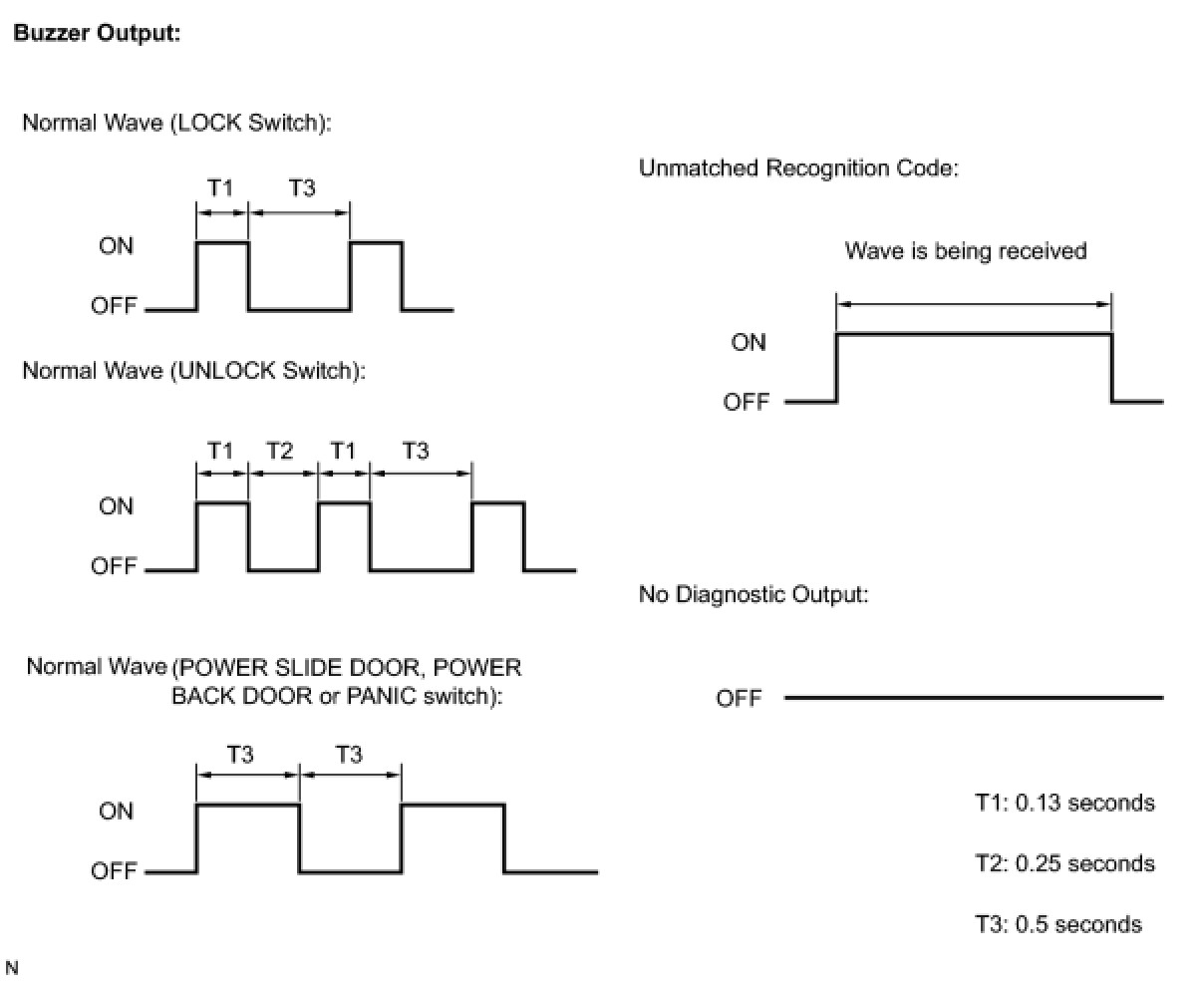 (a) Inspect the diagnosis outputs when the door control transmitter switch is held down (The diagnosis outputs can be checked with the sound of the wireless door lock buzzer).