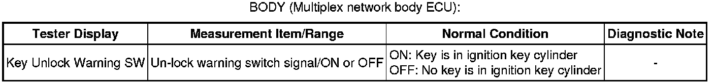 (a) Using the Techstream, check the DATA LIST for proper functioning of the un-lock warning switch.