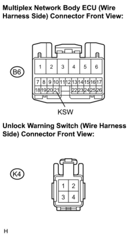 (a) Disconnect the B6 ECU connector and K4 switch connector.