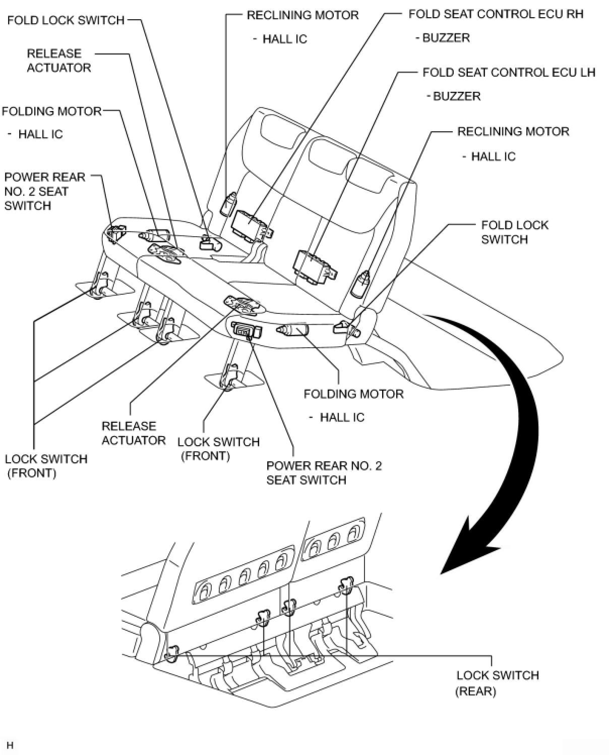 SEAT: REAR NO. 2 SEAT ASSEMBLY (w/ Power Stowing Function): PARTS LOCATION