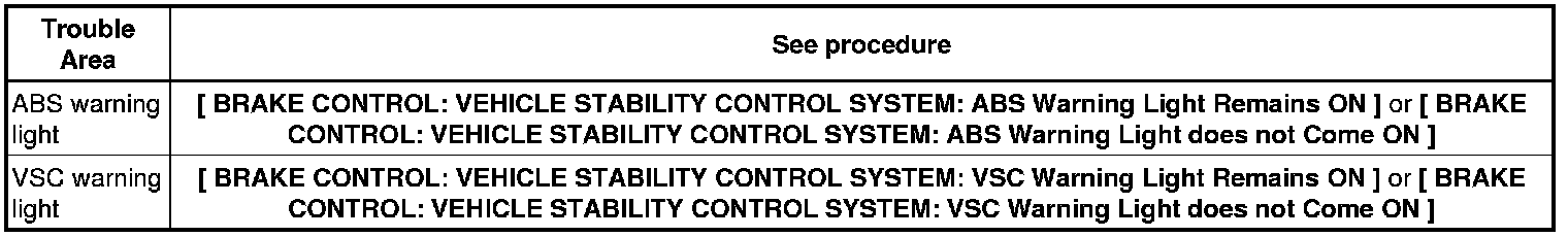 If the ABS warning light and VSC warning light do not blink, inspect the ABS warning light circuit and/or VSC warning light circuit.