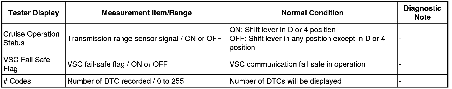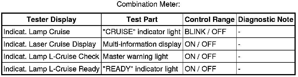 CRUISE CONTROL: DYNAMIC LASER CRUISE CONTROL SYSTEM: DATA LIST / ACTIVE TEST