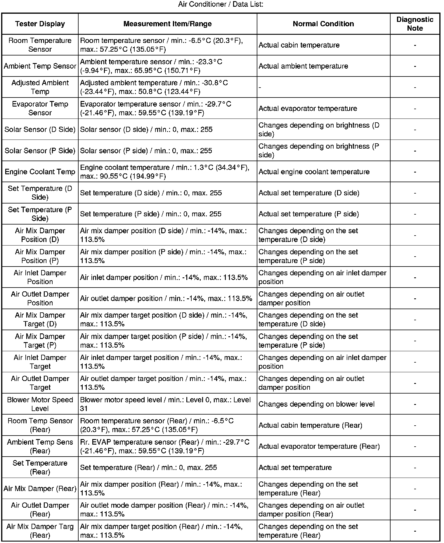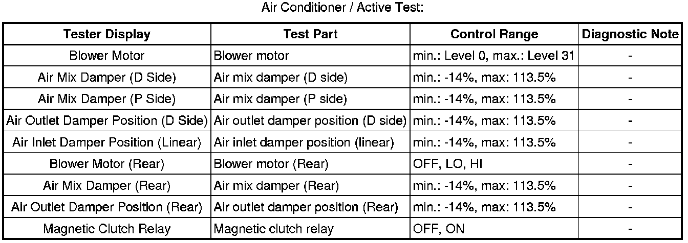 AIR CONDITIONING: AIR CONDITIONING SYSTEM (for Automatic Air Conditioning System): DATA LIST / ACTIVE TEST