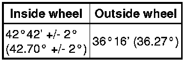If the right and left inside wheel angles are not as specified, check the right and left rack end lengths.