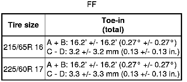If the toe-in is not within the specified value, inspect the suspension parts and replace them if necessary.