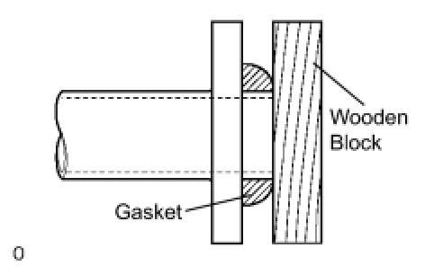 (2) Using a plastic hammer and wooden block, tap in the new gasket until its surface is flush with the front exhaust pipe.