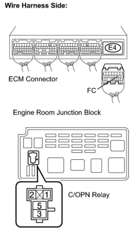 5. CHECK HARNESS AND CONNECTOR (ECM - C/OPN RELAY)