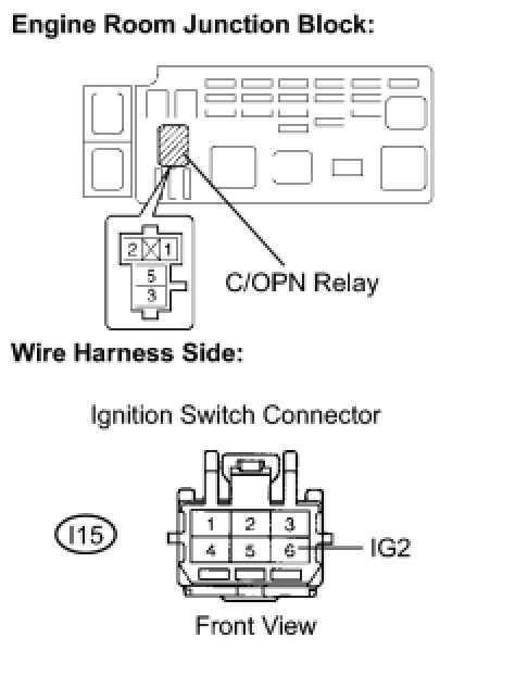 (b) Remove the C/OPN relay from the engine room junction block.
