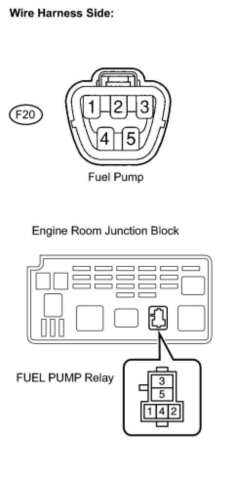 (1) Remove the FUEL PUMP relay from the engine room junction block.