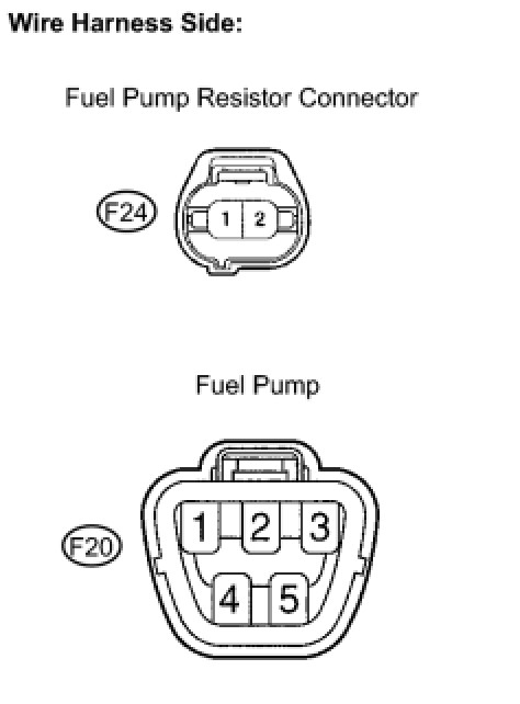 (2) Disconnect the F20 fuel pump connector.
