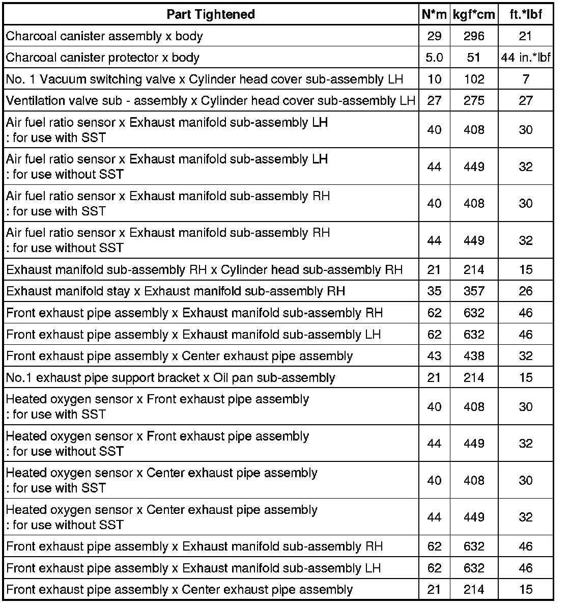 SERVICE SPECIFICATIONS: 2GR-FE EMISSION CONTROL: TORQUE SPECIFICATIONS