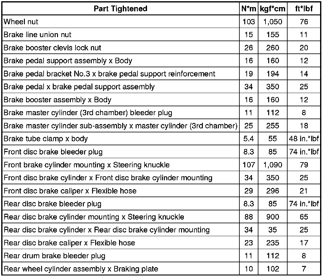 SERVICE SPECIFICATIONS: BRAKE: TORQUE SPECIFICATIONS