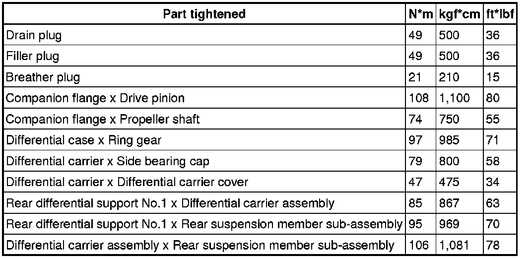 SERVICE SPECIFICATIONS: DIFFERENTIAL: TORQUE SPECIFICATIONS