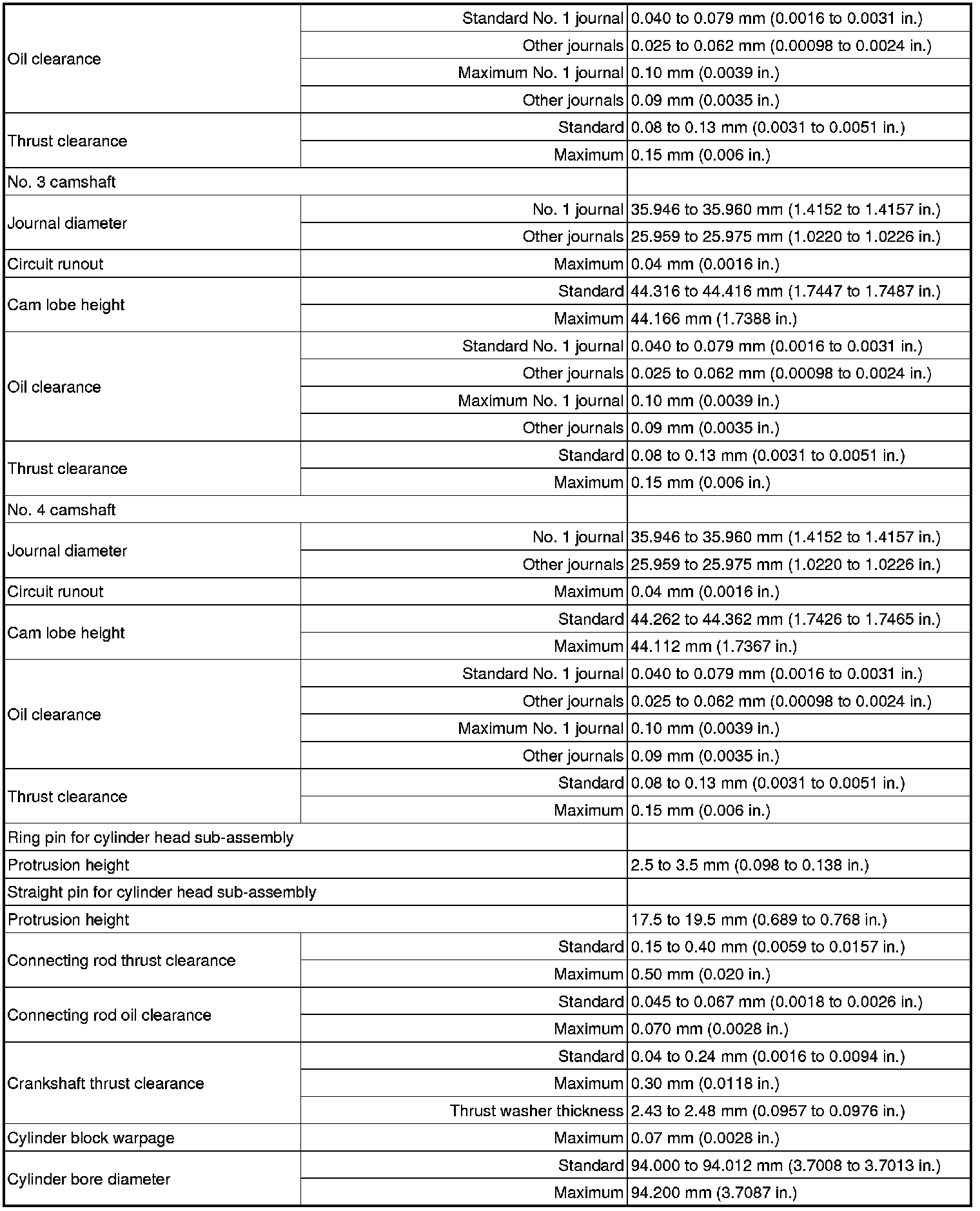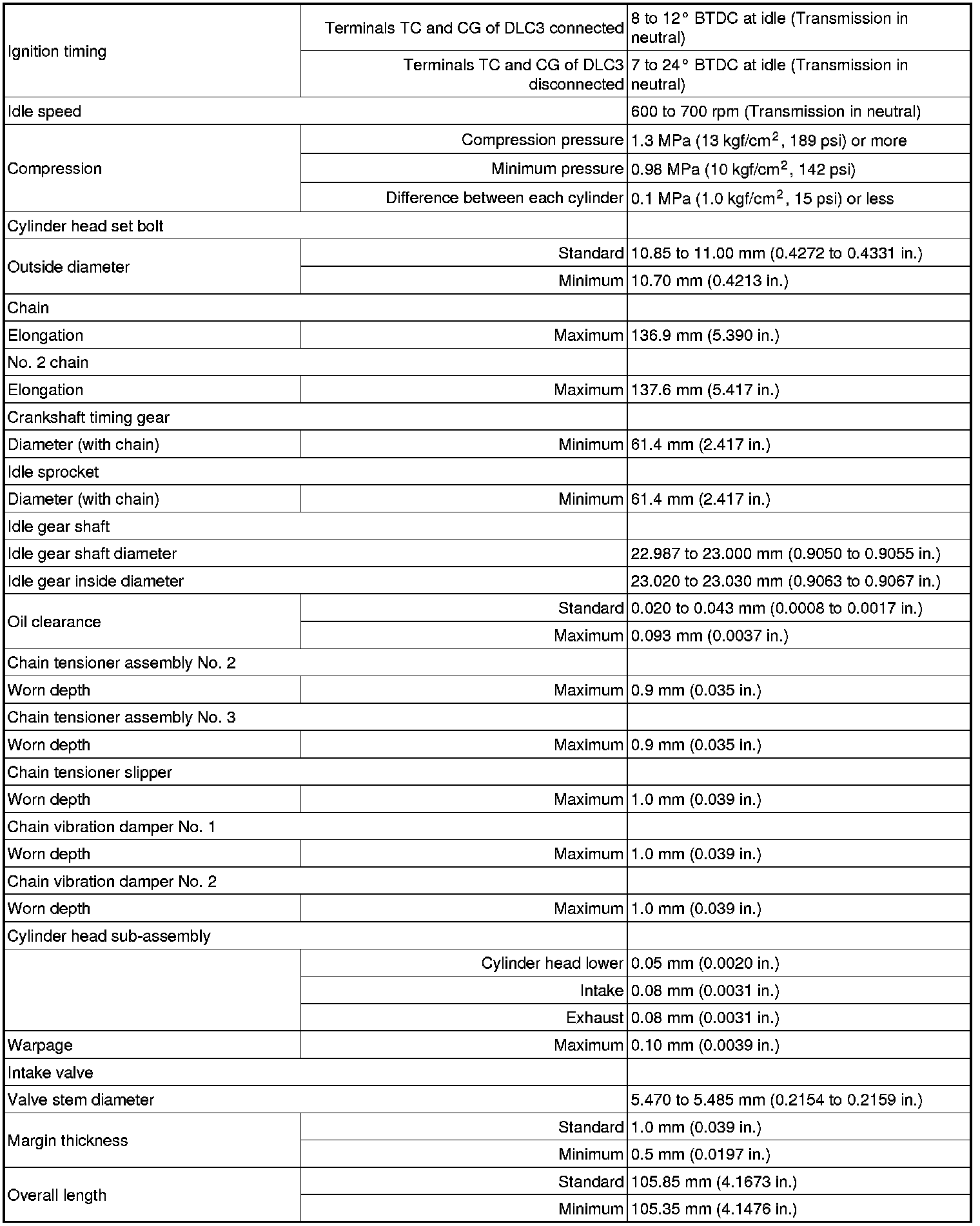 SERVICE SPECIFICATIONS: 2GR-FE ENGINE MECHANICAL: SERVICE DATA