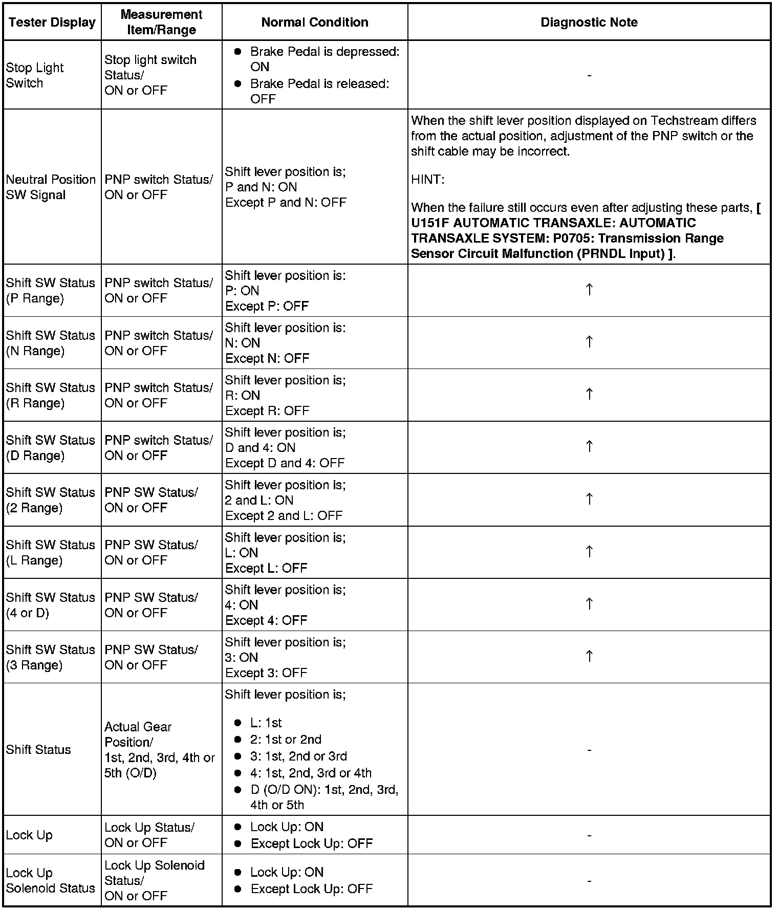 U151F AUTOMATIC TRANSAXLE: AUTOMATIC TRANSAXLE SYSTEM: DATA LIST / ACTIVE TEST