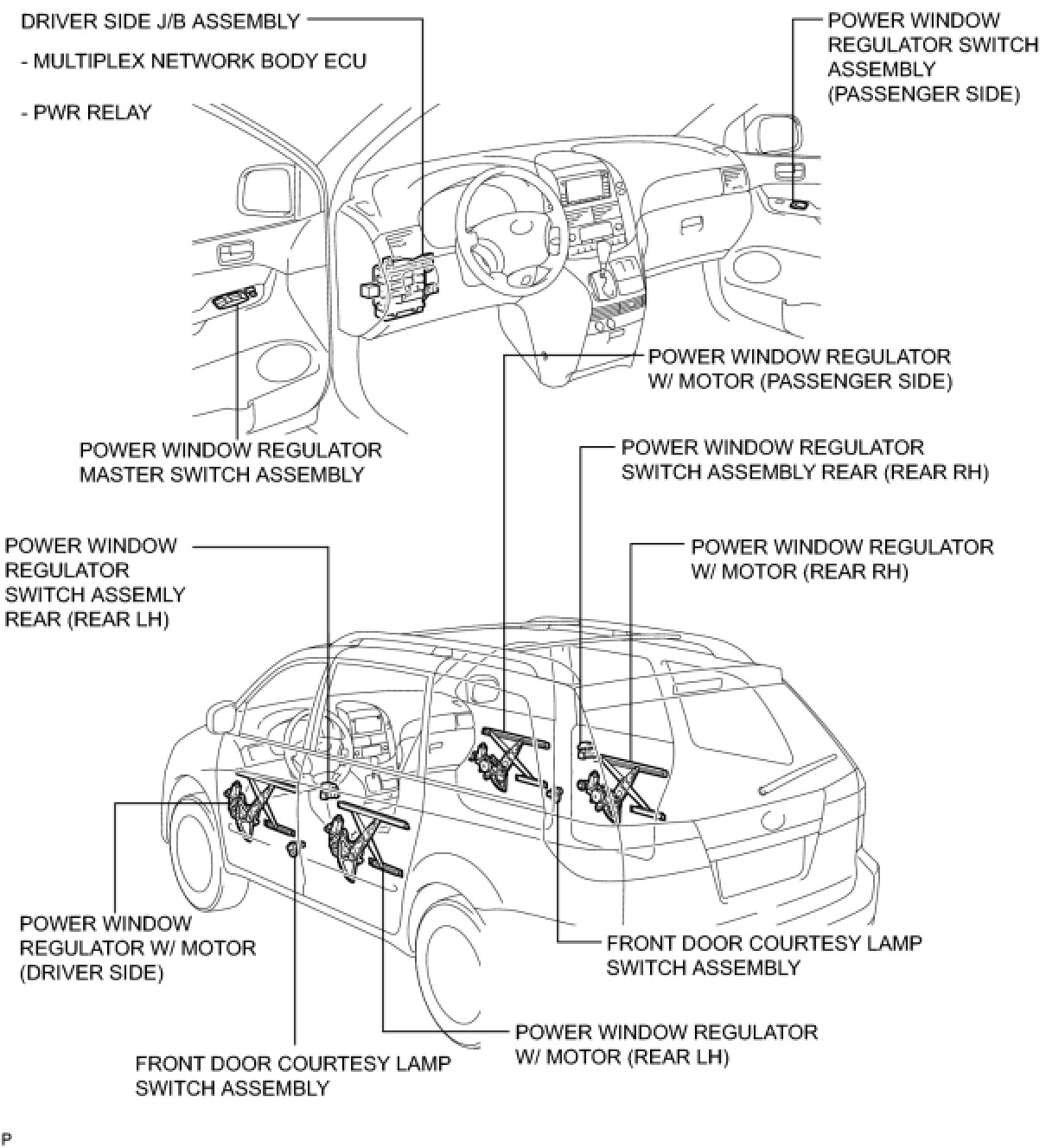 WINDSHIELD / WINDOWGLASS: POWER WINDOW CONTROL SYSTEM (w/o Jam Protection Function): PARTS LOCATION