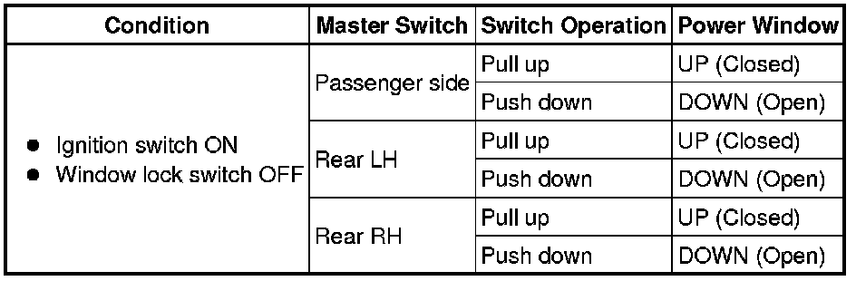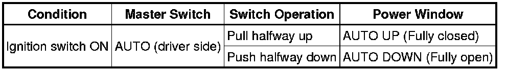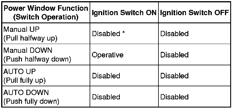 (b) *: However, manual UP function of the power window is operative when fully pulling up the power window switch.