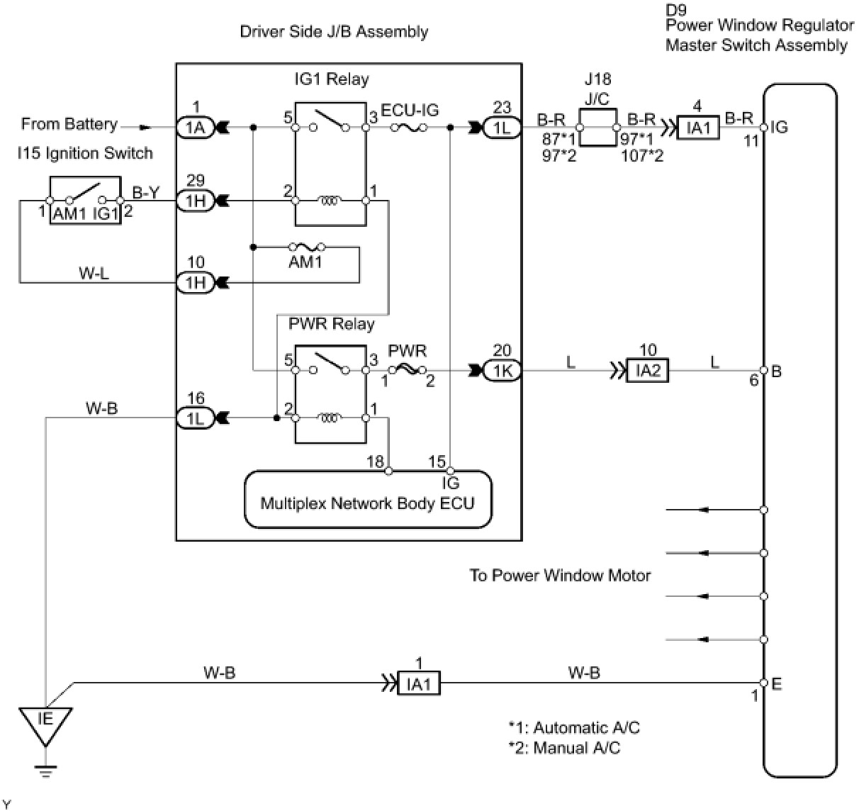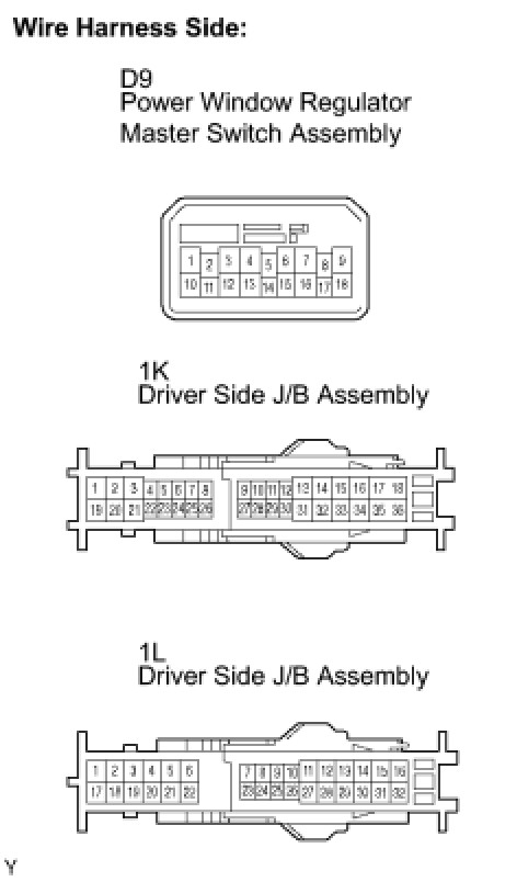 5. CHECK WIRE HARNESS (DRIVER SIDE JUNCTION BLOCK - POWER WINDOW MASTER SWITCH)