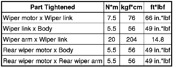 SERVICE SPECIFICATIONS: WIPER AND WASHER: TORQUE SPECIFICATIONS