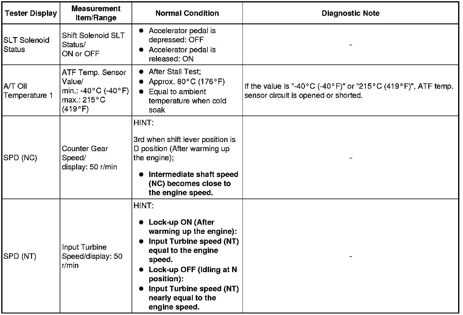 (h) *: "Activate the Solenoid (SLT)" in the Active Test is performed to check the line pressure changes by connecting the SST to the automatic transaxle, which is used in the HYDRAULIC TEST Hydraulic Test as well.