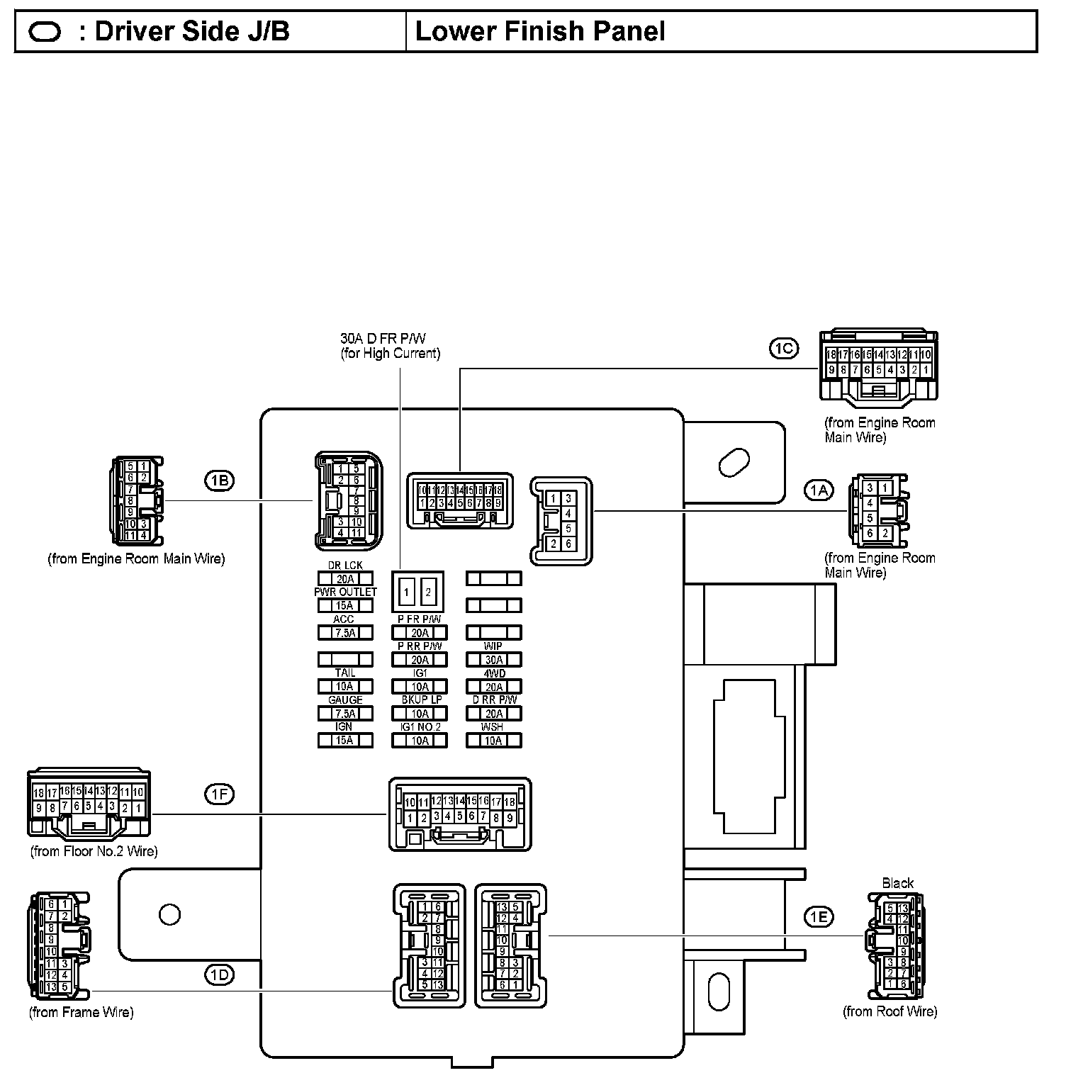 Instrument Panel J/B No.1 - Left Kick Panel: