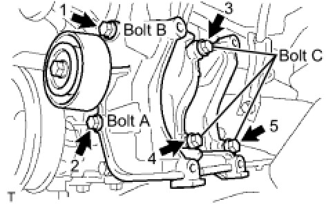 (a) Using several steps, uniformly install and tighten the 5 bolts in the sequence shown in the illustration.