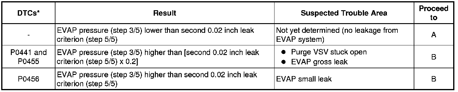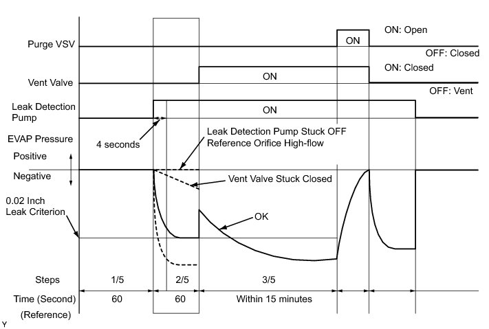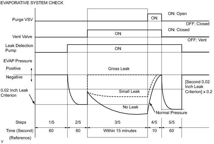(b) Compare the EVAP pressure in step 3/5 and the second 0.02 inch leak criterion (step 5/5).