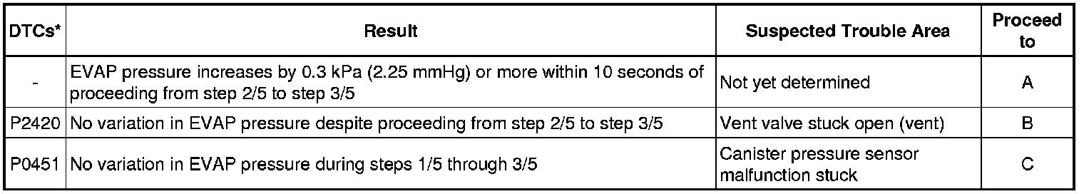 (a) Check the EVAP pressure increase in step 3/5.