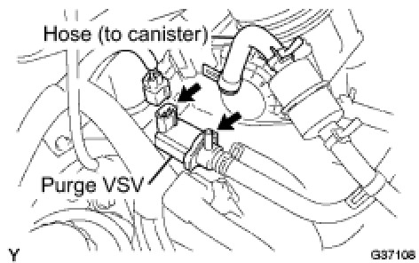(c) Disconnect the hose (connected to the canister) from the purge VSV.