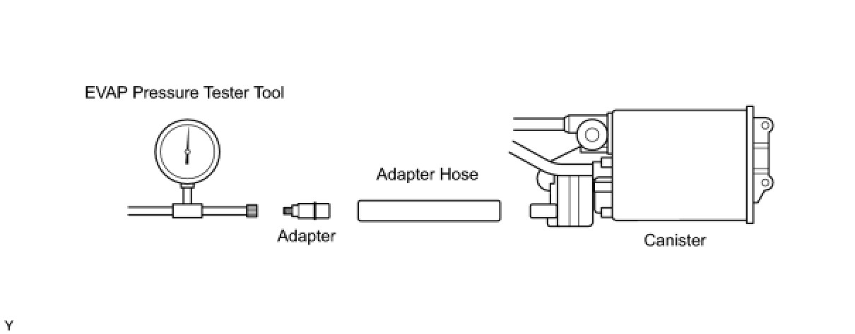 (c) Connect the EVAP pressure tester tool to the canister with the adapter.