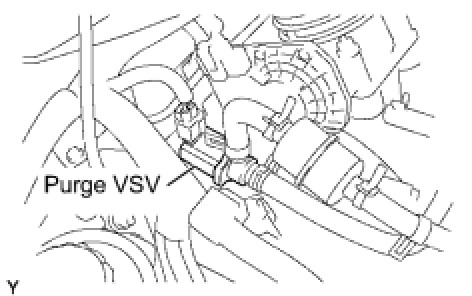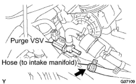 (a) Disconnect the hose (connected to the intake manifold) from the purge VSV.