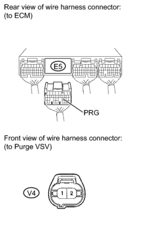 (a) Disconnect the E5 ECM connector and the V4 purge VSV connector.